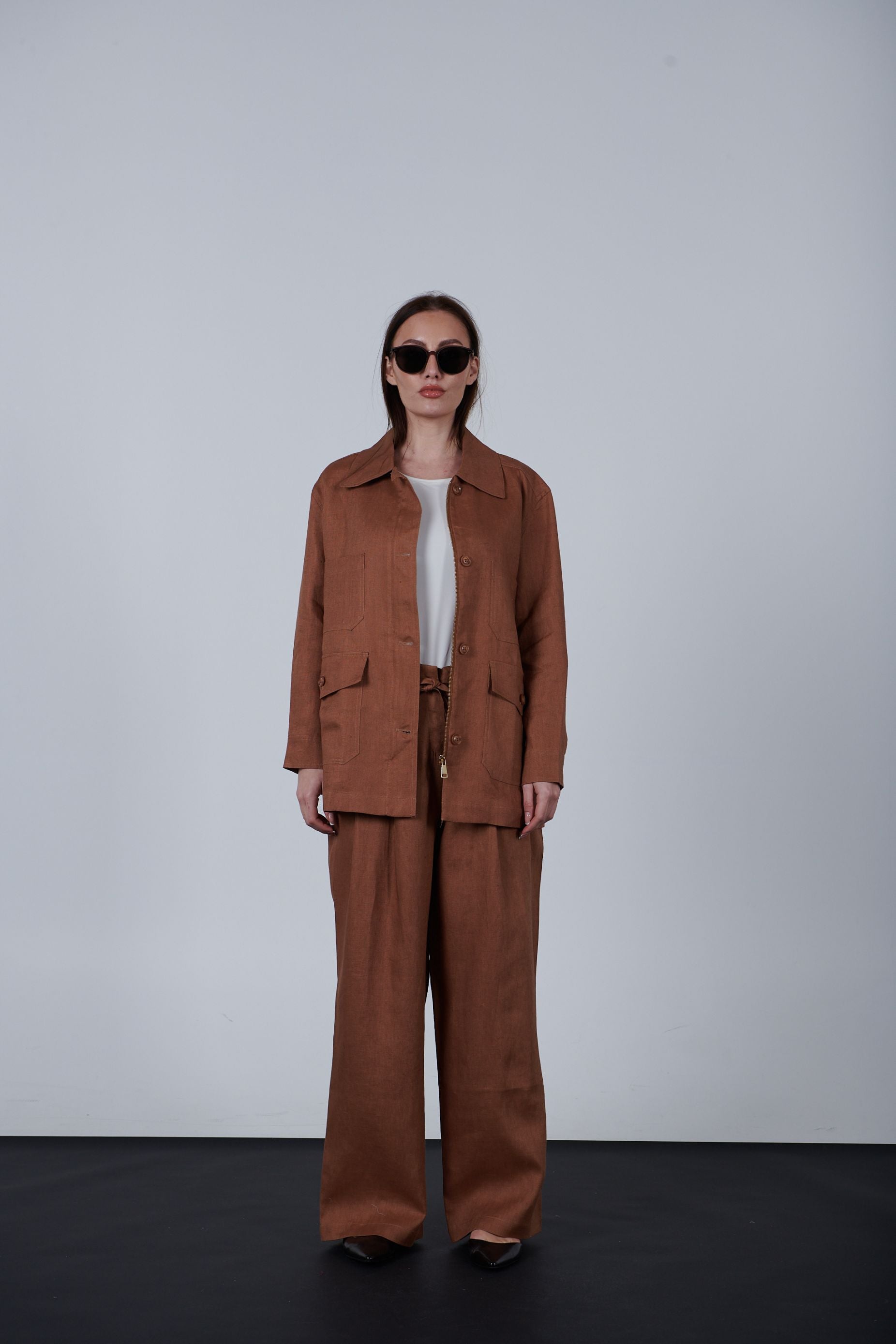 Linen pocketed jacket with a zipper