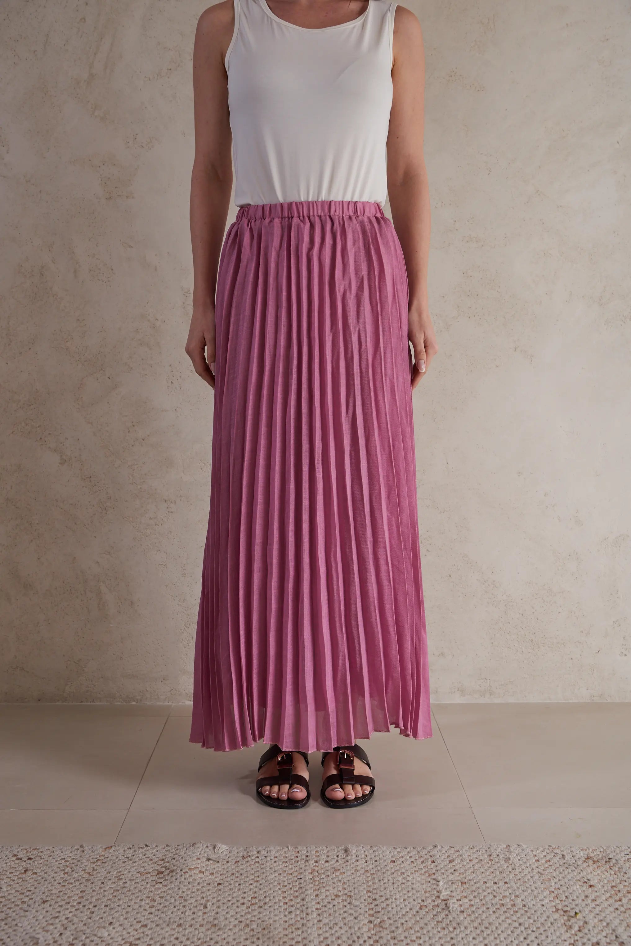 This maxi skirt features neat pleats and a comfortable elastic waistband for an easy fit. The lightweight fabric keeps you cool, and the maxi length provides modest coverage. Perfect for casual or work outfits, it pairs effortlessly with a variety of tops and shoes for versatile everyday style.